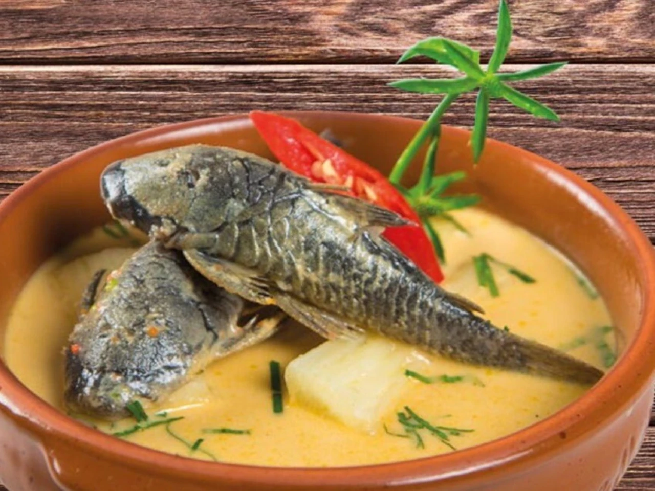 Este plato se puede acompañar con yuca o plátano verde, complementando así su sabor exótico con la riqueza de productos locales.
