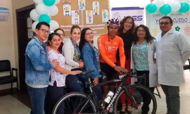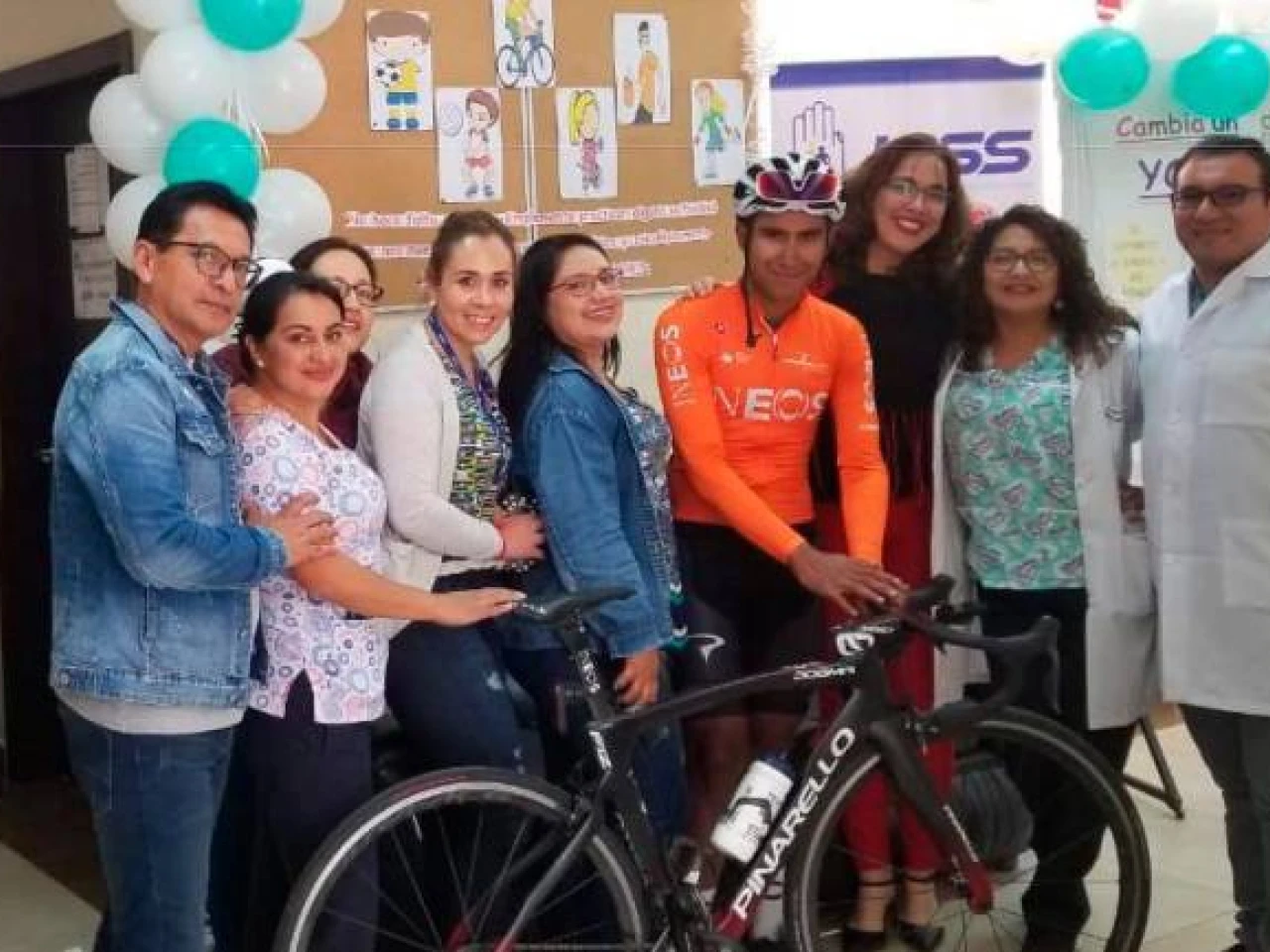 El pedalista oriundo de El Playón de Sucumbíos, Jhonatan Narváez, hizo un alto a sus entrenamientos para dedicar y compartir unas horas con los pacientes del Centro de Especialidades de Otavalo, que pertenece al IESS.