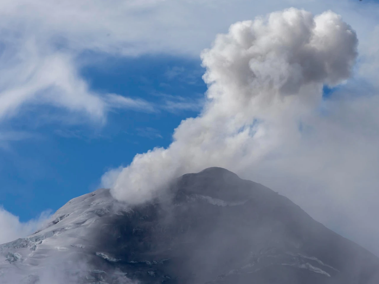 La capa de ceniza gris sobre el volcán se concentró en el flanco oriental del macizo, según reportó entonces el Instituto Geofísico a partir de las cámaras de vigilancia que rodean al volcán.
