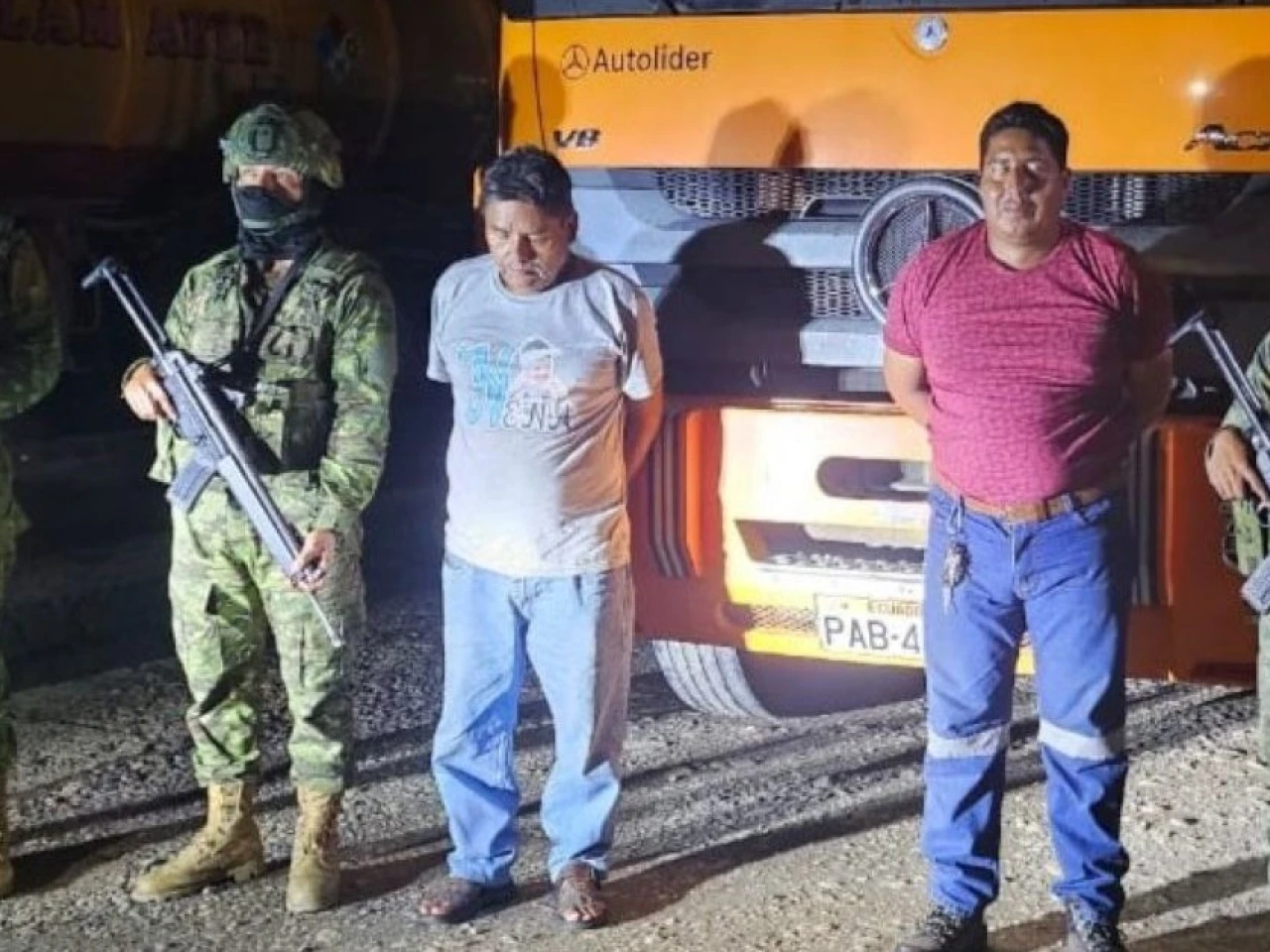 En una operación realizada en el cantón Shushufindi, provincia de Sucumbíos, los militares decomisaron dos motores de succión, un cabezal tipo tanquero con capacidad para 10 mil galones completamente lleno, un teléfono celular, dos radios de comunicación, documentación vehicular y otros elementos. Los dos ciudadanos detenidos fueron puestos de inmediato a disposición de las autoridades competentes.