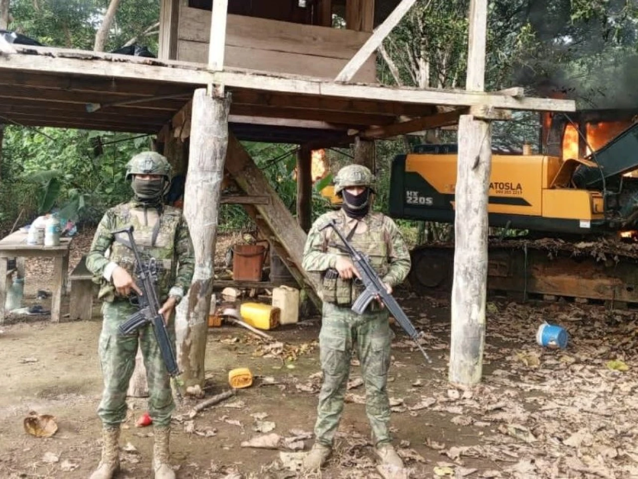 La intervención se llevó a cabo gracias a labores de inteligencia militar, que permitieron realizar un reconocimiento ofensivo en la zona. Durante la operación se localizaron los siguientes equipos: una retroexcavadora marca Hyundai modelo HX220S, una retroexcavadora marca Sinomach modelo ZG3225-9C y un motor de succión de agua marca Deutz-G.