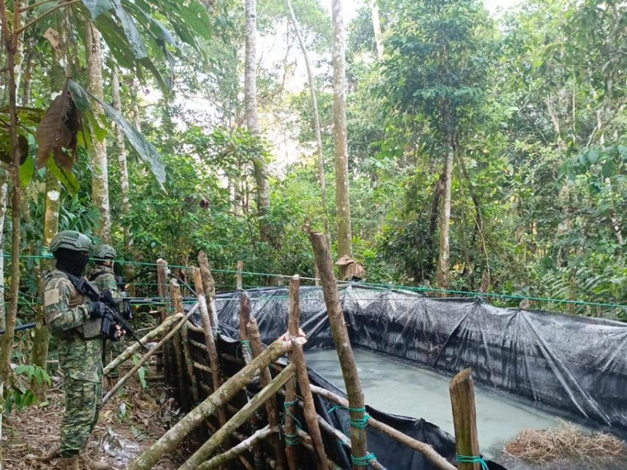Una de las piscinas contenía aproximadamente 900 galones de combustibles líquidos derivados de hidrocarburos / Foto: cortesía FF.AA.