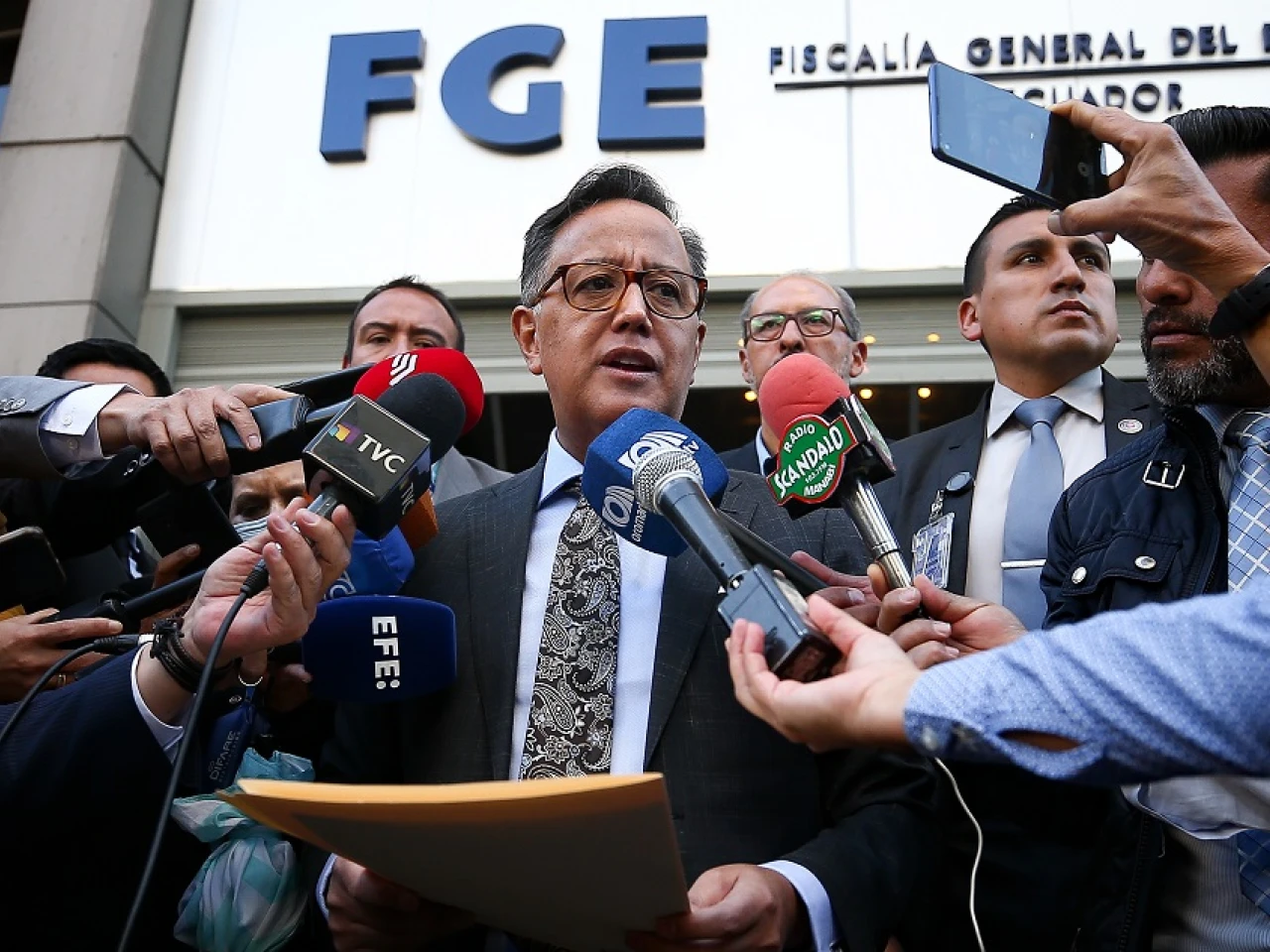El Secretario Nacional de Seguridad Pública, Diego Ordónez, presentó la denuncia en la Fiscalía previo a dejarla, este mismo miércoles, ante el Consejo de la Judicatura / Foto: EFE