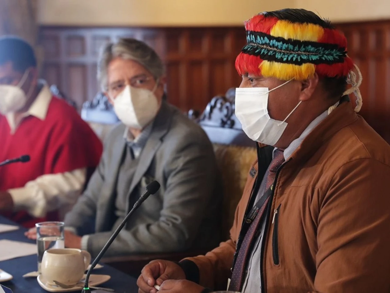 El presidente Guillermo Lasso se reunió en el Palacio de Carondelet con representantes de la comunidad shuar.