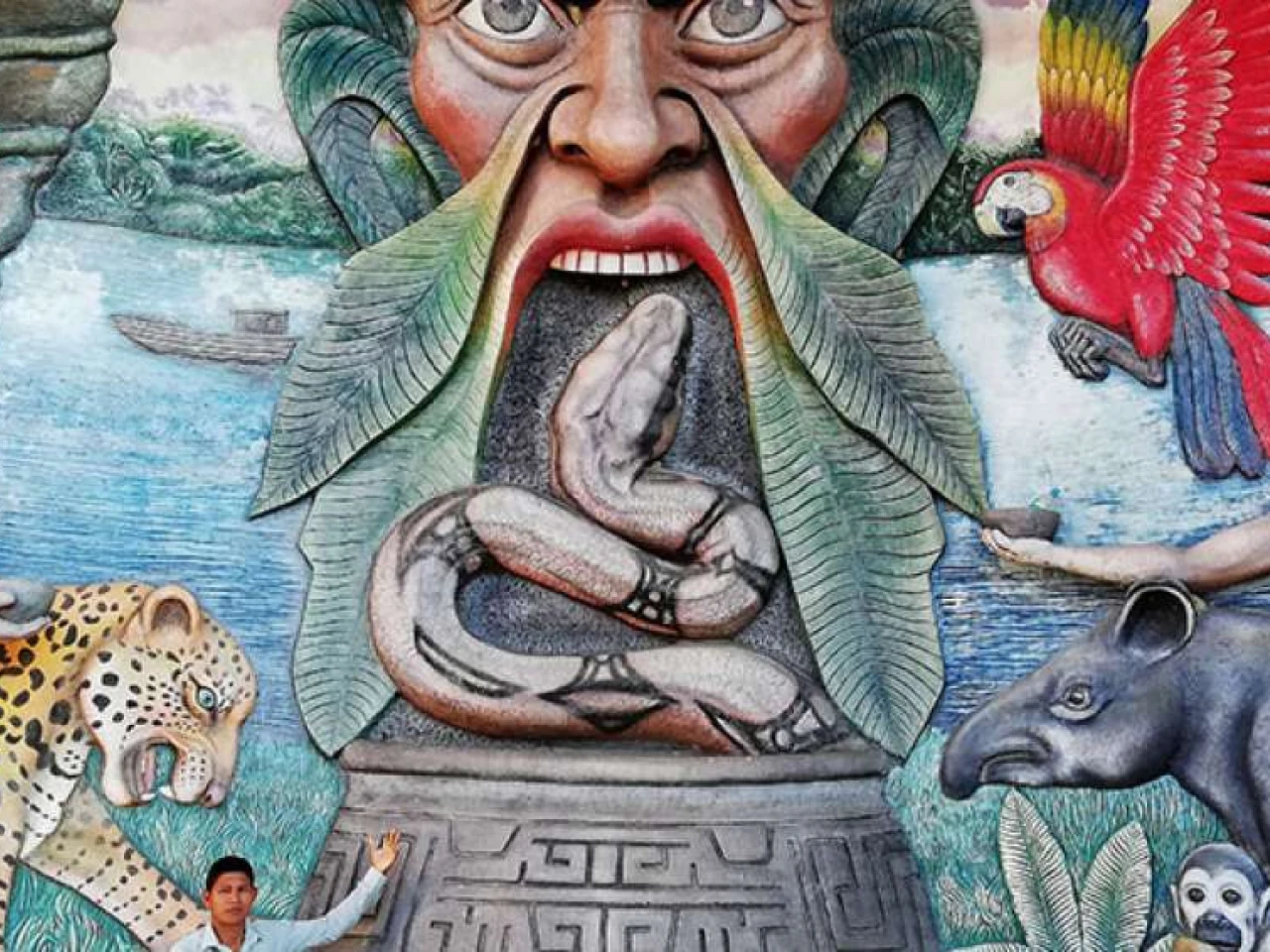 Desde pequeño, los padres de Víctor le enseñaron a amar y respetar la naturaleza, la cual se representa en un magnífico mural que da la bienvenida a los turistas que llegan a Aguarico. Foto: El Telégrafo