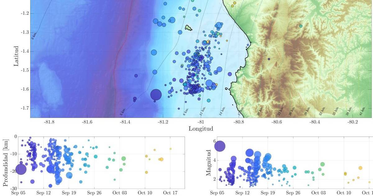Quito- El Instituto Geofísico de la Escuela Politécnica Nacional (IG) informó este miércoles de que desde el pasado 5 de septiembre empezó a registrar un enjambre sísmico al oeste de las costas de Puerto López, de la provincia ecuatoriana de Manabí.