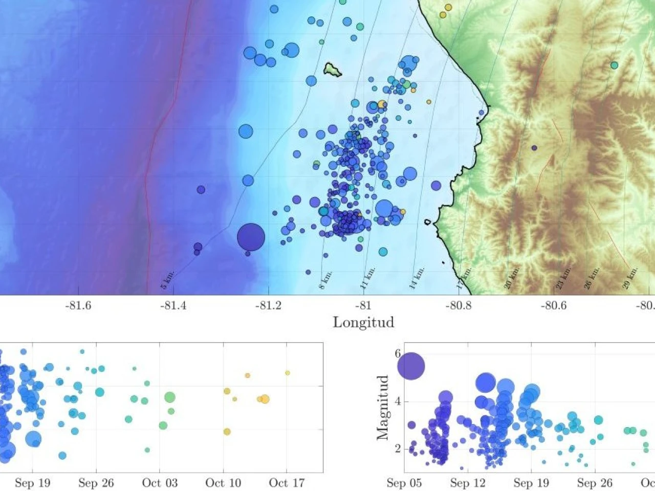 Quito- El Instituto Geofísico de la Escuela Politécnica Nacional (IG) informó este miércoles de que desde el pasado 5 de septiembre empezó a registrar un enjambre sísmico al oeste de las costas de Puerto López, de la provincia ecuatoriana de Manabí.
