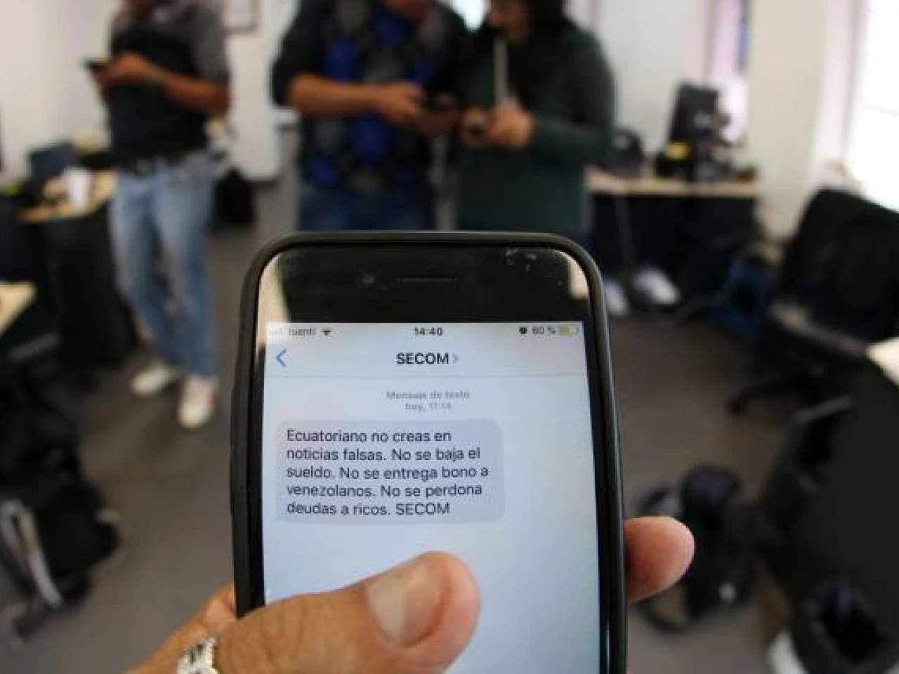 Mensajes. Desde la madrugada de ayer, el Gobierno envía mensajes de texto con desmentidos oficiales. Foto: Expreso