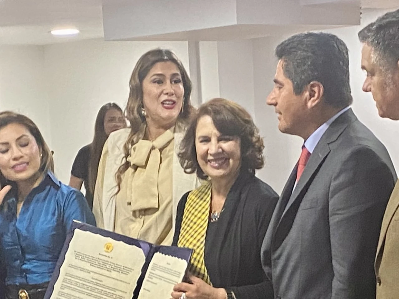 Rosalía Arteaga, la primera mujer que ejerció la Presidencia de Ecuador, fue condecorada por el Parlamento Andino por su liderazgo en la transformación de la educación y la cultura del país, así como su contribución al desarrollo e integración de Latinoamérica, la democracia y la protección de los derechos humanos.