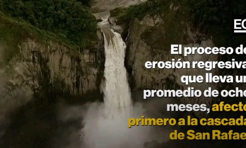 Este fenómeno empezó en octubre del 2019, según fotografías satelitales, refirió Ricardo Buitrón, ingeniero hidráulico. En ese entonces, se evidenció ya un hundimiento de la margen izquierda del río Coca, que estaba próxima a la cascada de San Rafael y desde entonces ha avanzado aguas hacia arriba.