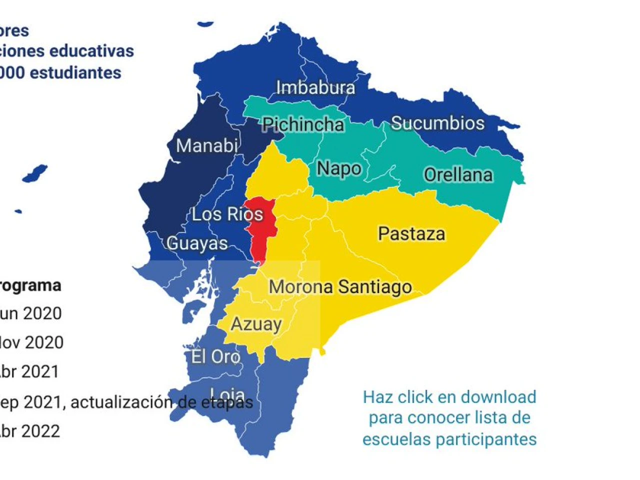 Este programa es parte de un convenio entre el ministerio de Educación y el gobierno de los Estados Unidos. ‘Ecuador Habla Inglés’ arrancó en 2020 y benefició a profesores de escuelas y colegios públicos de Manabí, y se ha expandido paulatinamente al resto de provincias del país. Es auspiciado por el gobierno de los Estados Unidos y es implementado por la organización EIL Ecuador.