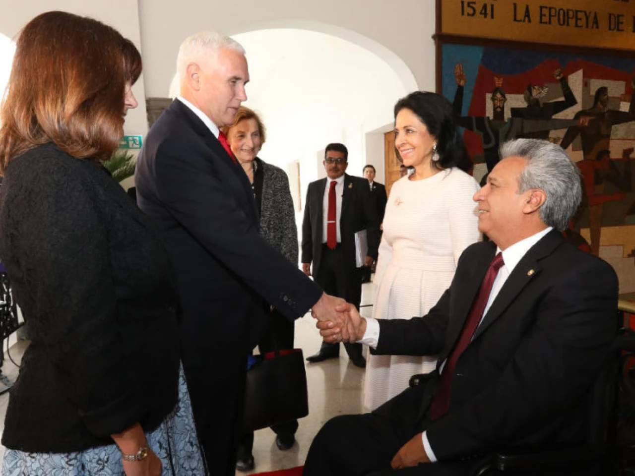 l vicepresidente estadounidense Mike Pence saluda al presidente Lenín Moreno durante su visita oficial, en junio del 2019. - Foto: Presidencia de la República