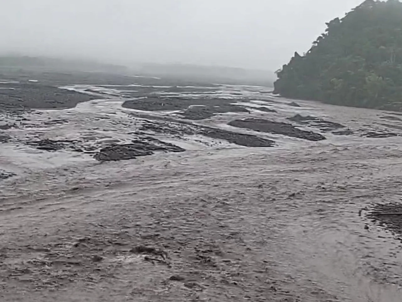 El Río Upano se desbordó por descenso de lahares del Sangay
