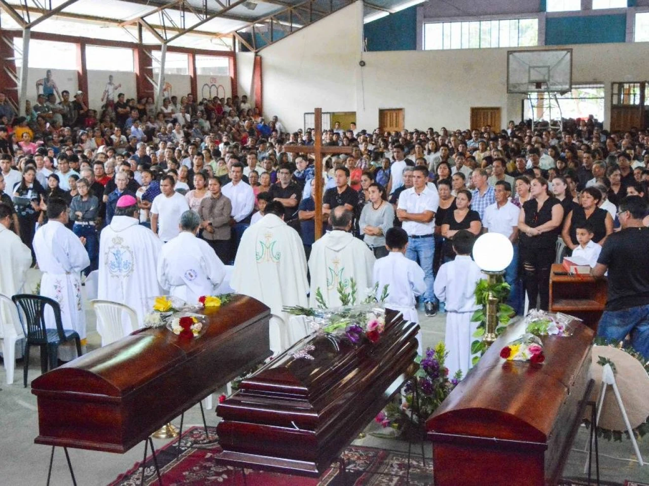 En el coliseo de la Unidad Educativa Río Santiago se realiza la tarde de este domingo la misa campal por los 9 fallecidos en la tragedia, que tras una continua lluvia, provocó un derrumbe que sepultó varias viviendas en el barrio La Florida, en este cantón amazónico.
