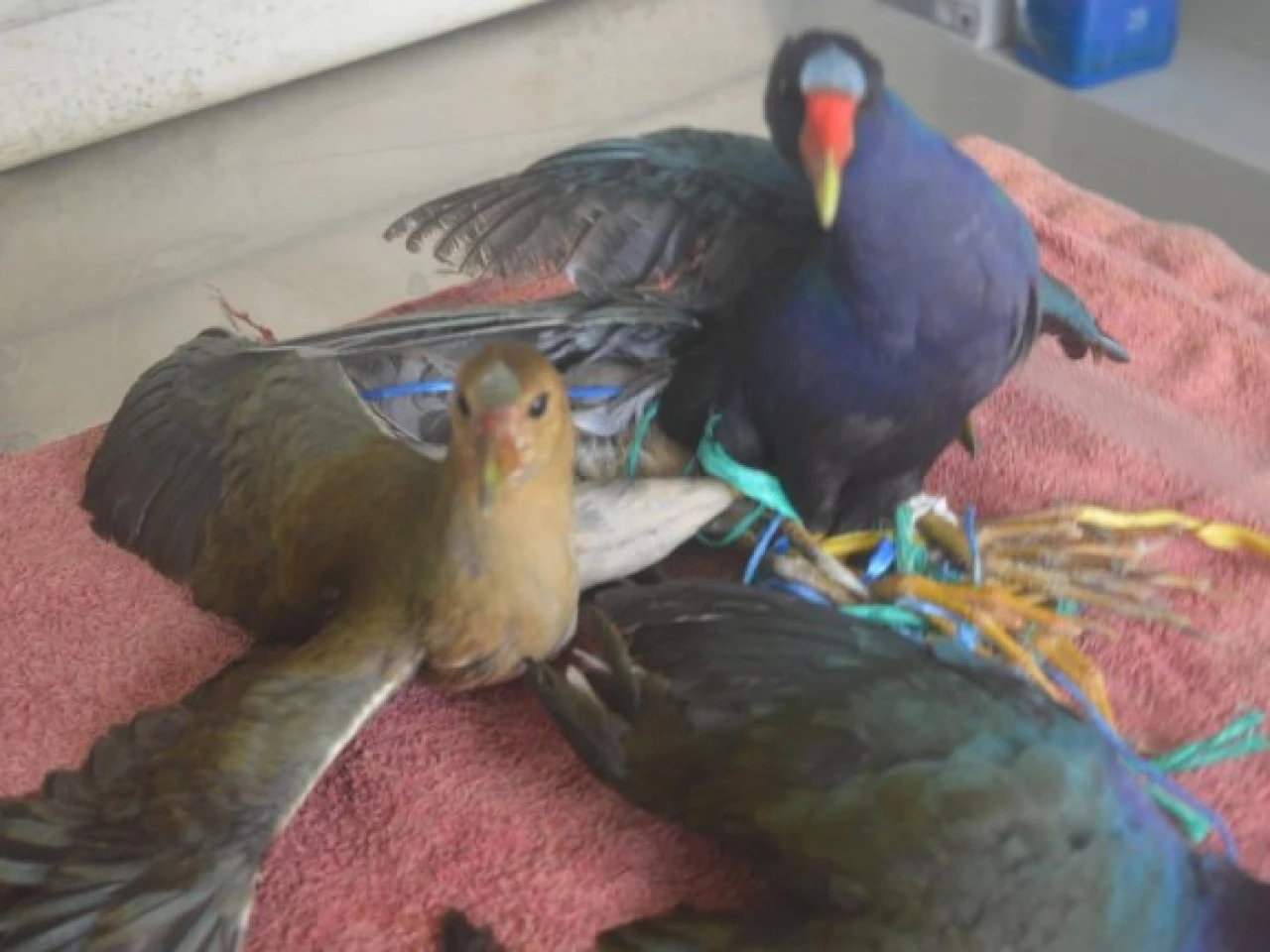 Cinco gallaretas púrpuras, juveniles y adultas fueron rescatadas mientras eran transportadas hacia Quito desde Lago Agrio (Sucumbíos).