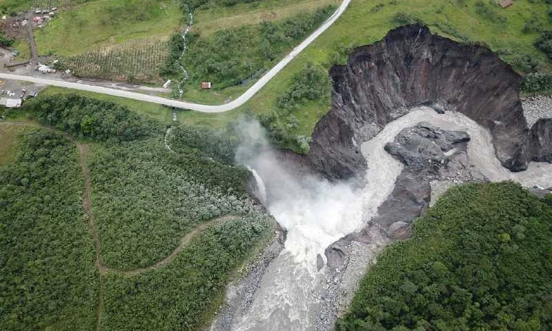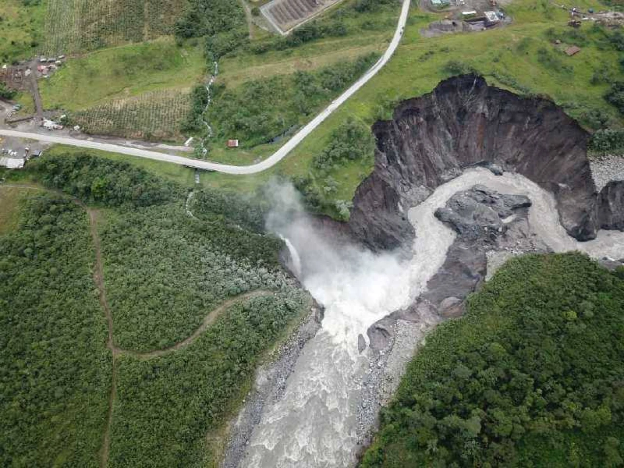Con tomas de drones se ha verificado cómo un nuevo salto de agua de al menos 60 metros genera un socavón que apenas está separado por 25 metros de la carretera Lago Agrio-Quito (en el tramo de los kilómetros 67 al 70). Paralelos a la carretera también corren los oleoductos.