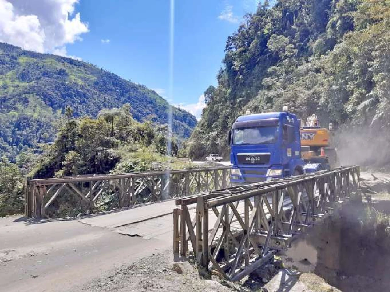 Ante ello, a manera de solución provisional para permitir el paso de vehículos, se colocó un puente Bailey que aún sigue en el sitio.