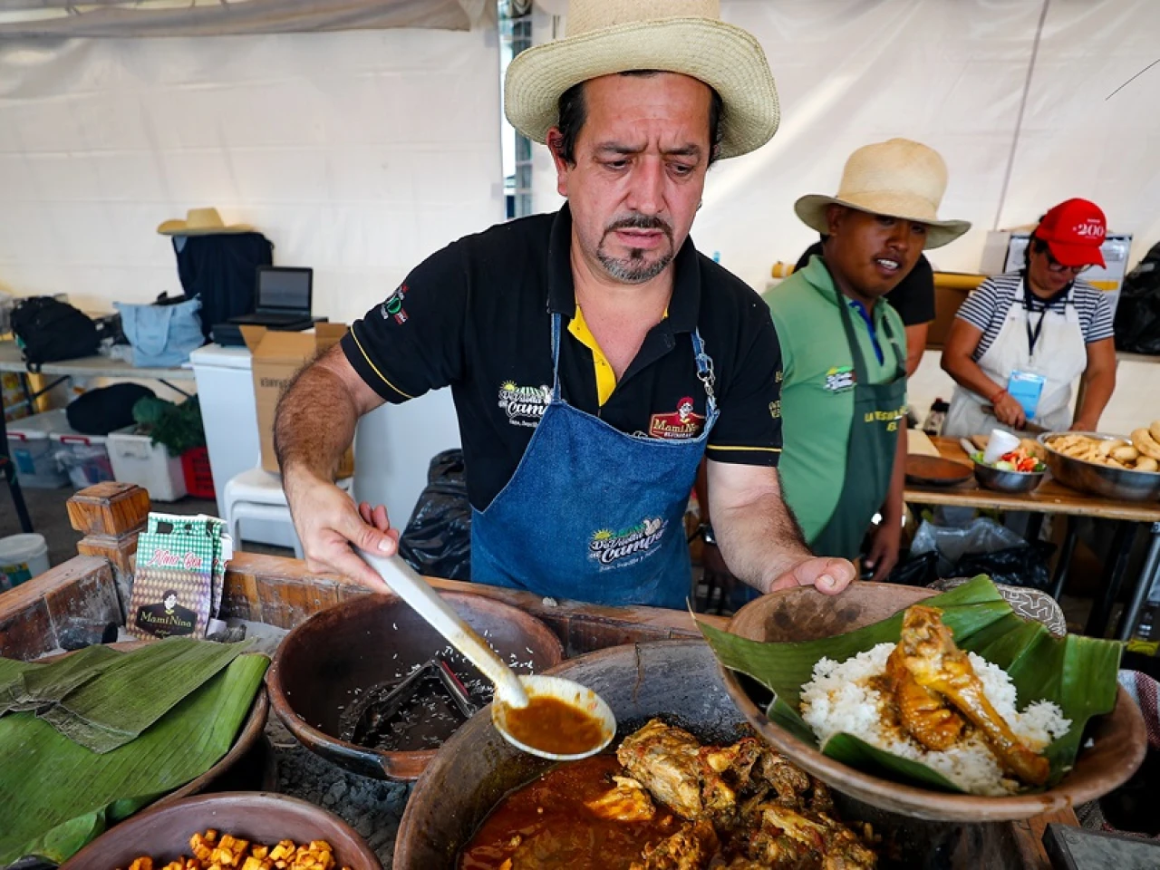 A la sazón, entre los participantes en esta edición, encontramos el puesto en el que trabaja Henry Valencia, gerente del restaurante Vuelta al Campo, especializado en comida ancestral manabita.