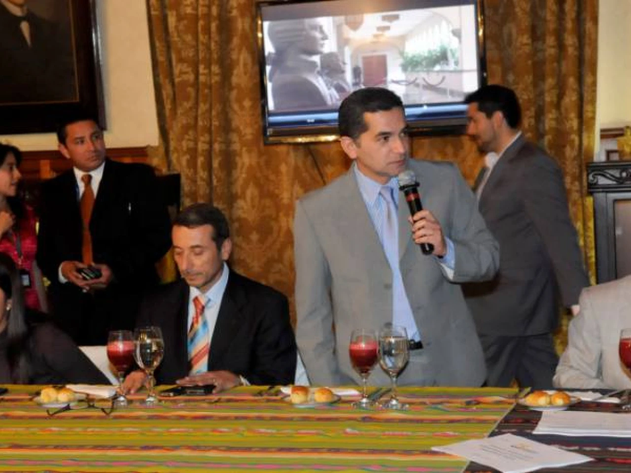 Vinicio y Fernando Alvarado Espinel en un almuerzo que ofreció la Secretaría de Comunicación, en el 2009, en Quito. Foto: El Universo