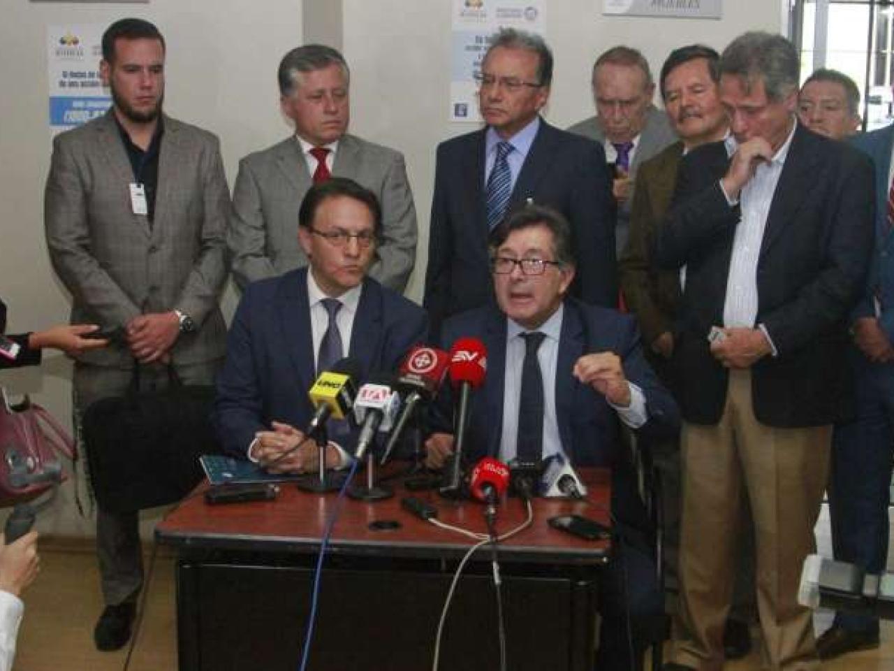 El activista político Fernando Villavicencio y el exasambleísta César Montúfar llegaron ayer ante la Corte Nacional de Justicia a presentar una acusación particular en contra del expresidente, Rafael Correa; su exsecretario jurídico, Alexis Mera; el exsecretario del agua, Javier Solís; la exministra de Transporte y Obras Públicas, María de los Ángeles Duarte; y el exsecretario de la Administración Pública, Vinicio Alvarado; por el caso denominado ‘Sobornos 2012-2016’.