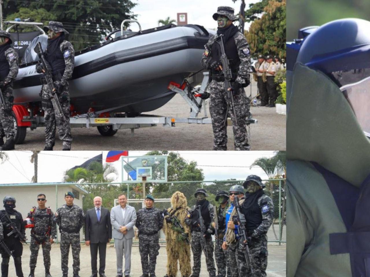 El Gobierno francés entregó a Ecuador un bote táctico Sillinger 525 Proraid y equipos complementarios de buceo en beneficio del Grupo de Intervención y Rescate (GIR), informó este jueves el Ministerio del Interior del país andino.
