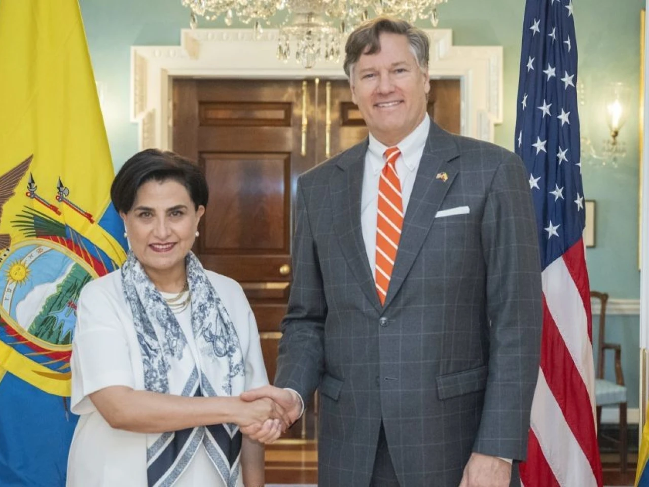 Durante su encuentro con el subsecretario de Estado, Christopher Landau, ambas autoridades revisaron las acciones conjuntas que mantienen ambos países y reafirmaron la importancia de la cooperación como eje central de la relación. Landau destacó que, bajo las administraciones de los presidentes Donald Trump y Daniel Noboa, “las relaciones entre Estados Unidos y Ecuador están en su mejor momento en décadas, quizá en la historia”.
