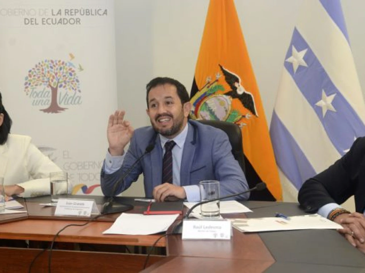 Rueda de prensa del ministro de trabajo Raúl Ledesma y el subsecretario General de acción política Iván Granada y María Alejandra Muñoz directora del servicio nacional de aduana denuncia sobre supuesto acto de corrupción. Foto: La República