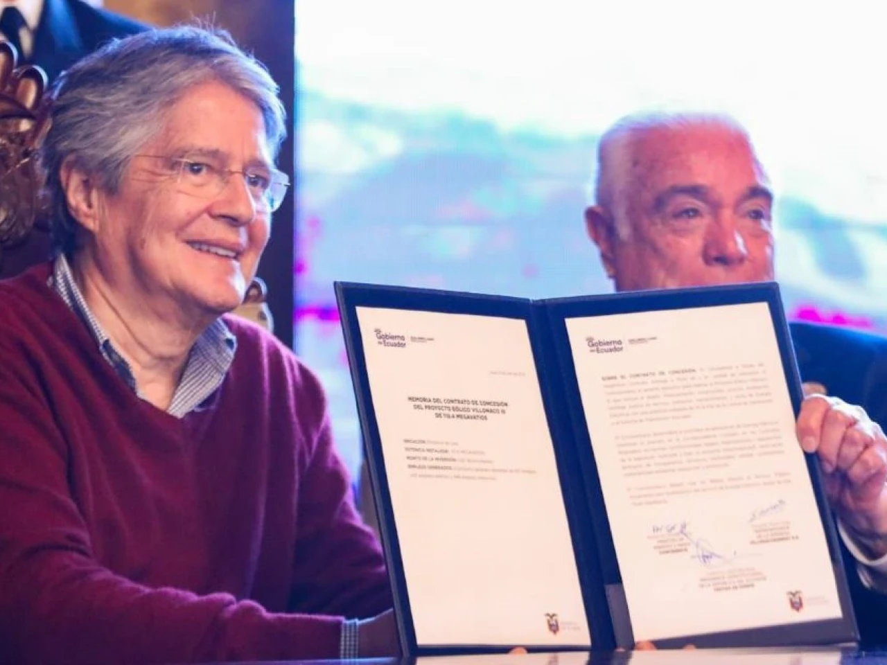 El contrato fue suscrito en el Palacio de Carondelet, sede de la Presidencia y del poder ejecutivo de Ecuador, por el presidente ecuatoriano, el conservador Guillermo Lasso; el ministro de Energía y Minas, Fernando Santos Alvite, y el representante Villonaco Energy, Eduardo Mora.