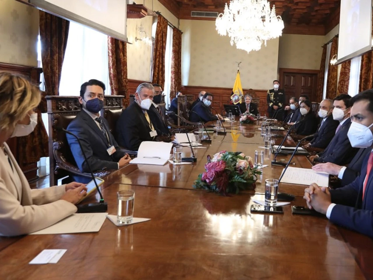 El presidente Guillermo Lasso se reunió hoy con representantes de la Cámara de Minería del Ecuador. La cita se efectuó en el Palacio de Carondelet. Estuvo presente Juan Carlos Bermeo, ministro de Energía y Recursos Naturales No Renovables, e Iván Correa, secretario de la Administración Pública.