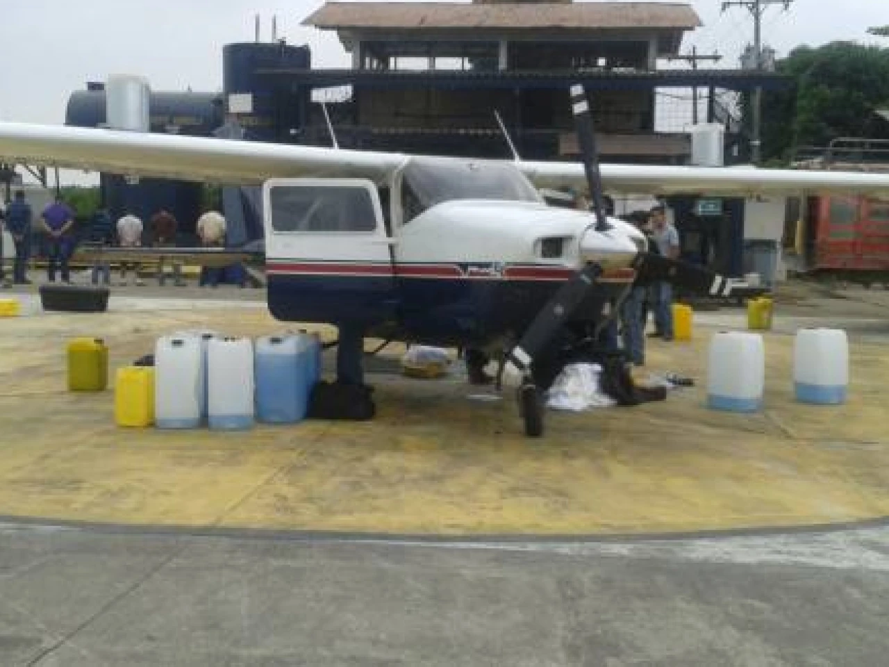 Cuando la Policía apareció sorpresivamente en la hacienda los ahora aprehendidos estaban embarcando la droga en la nave, que a su vez estaba siendo abastecida de combustible.
