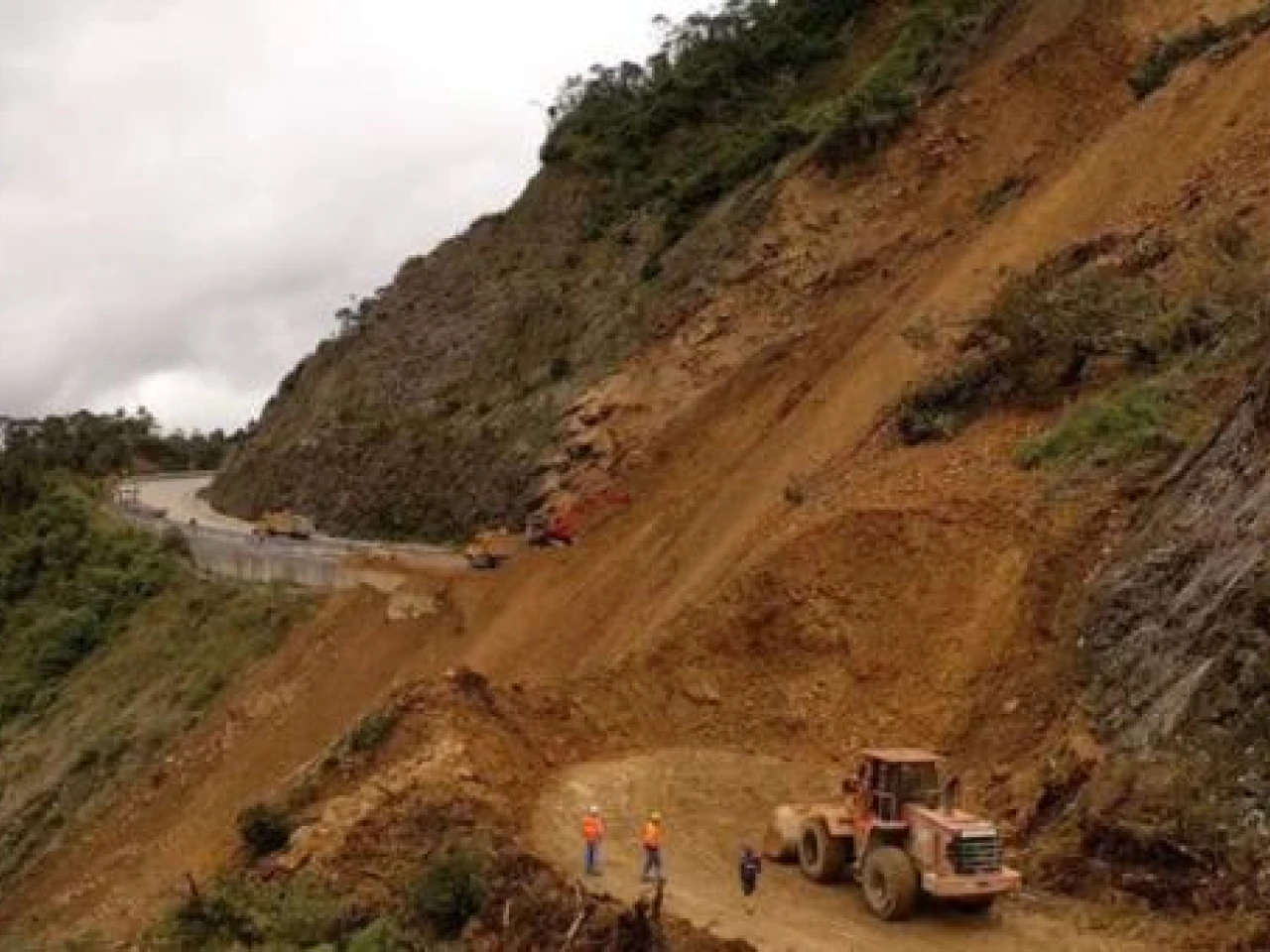 Se trata del desprendimiento de unos 6 000 metros cúbicos de tierra pastosa o arcilla, desde la parte alta del talud, en el mismo kilómetro 32 de esta vía principal. Ese material había perdido firmeza y colapsó.