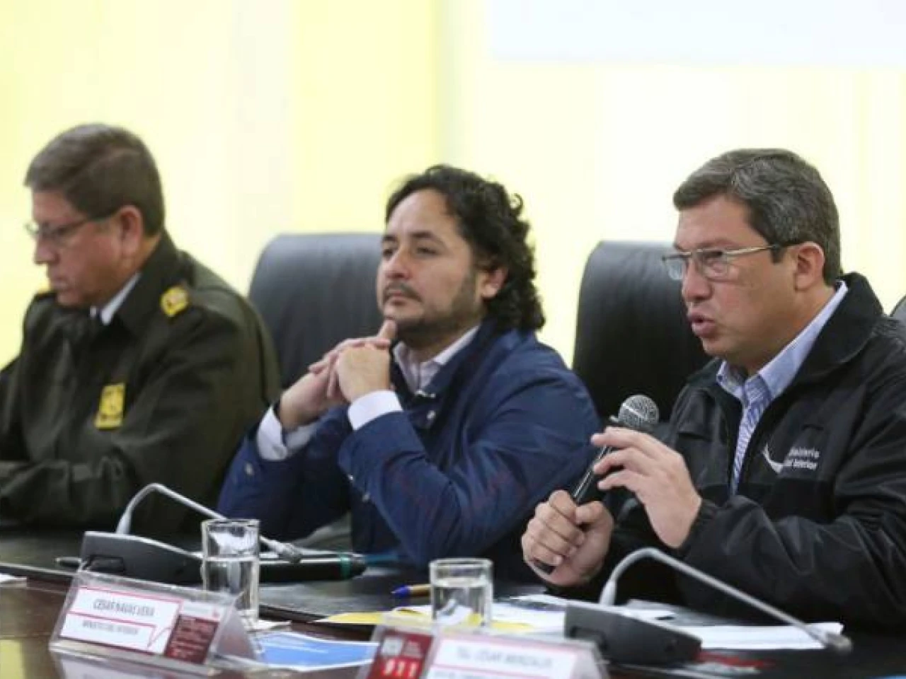 El ministro del Interior, César Navas, en rueda de prensa que ofreció este domingo, informó algunos resultados de los operativos que se llevan a cabo en la frontera norte tras el asesinato de un equipo periodístico de El Comercio por parte de disidentes de las Fuerzas Armadas Revolucionarias de Colombia (FARC).