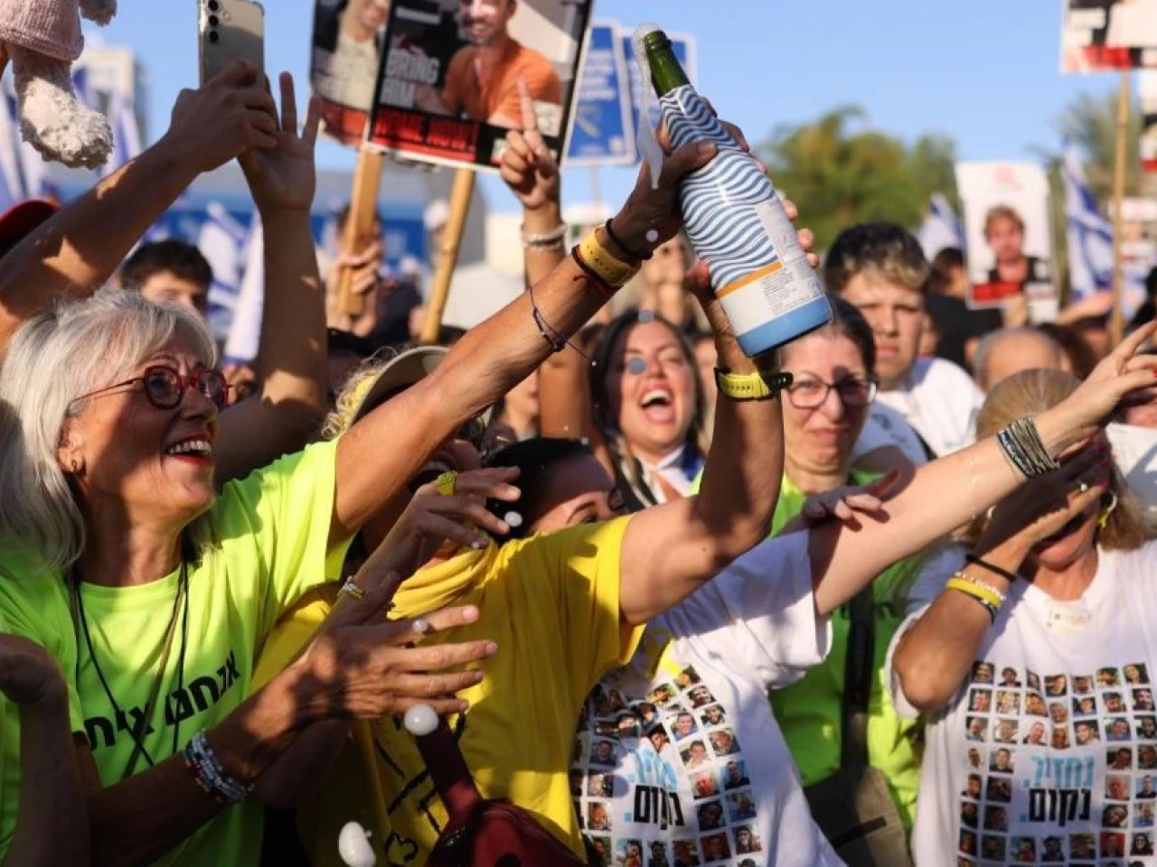 Entre lágrimas, gritos y aplausos una multitud que rodea el Sheba celebró la llegada de la aeronave / Foto: EFE