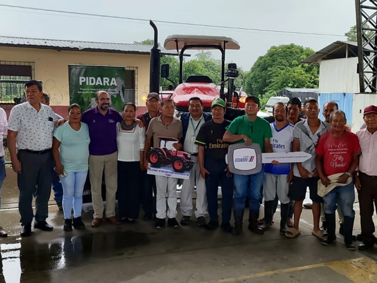 Uno de los principales hitos fue la entrega de una Solución de Mecanización Agroproductiva (SOMA) a 106 agricultores de la Asociación Agroproductiva AKSIR, del cantón Lago Agrio. Este paquete incluye un tractor y varios implementos agrícolas que permitirán optimizar las labores en el campo, reducir costos operativos y mejorar la preparación de los suelos antes de la siembra.