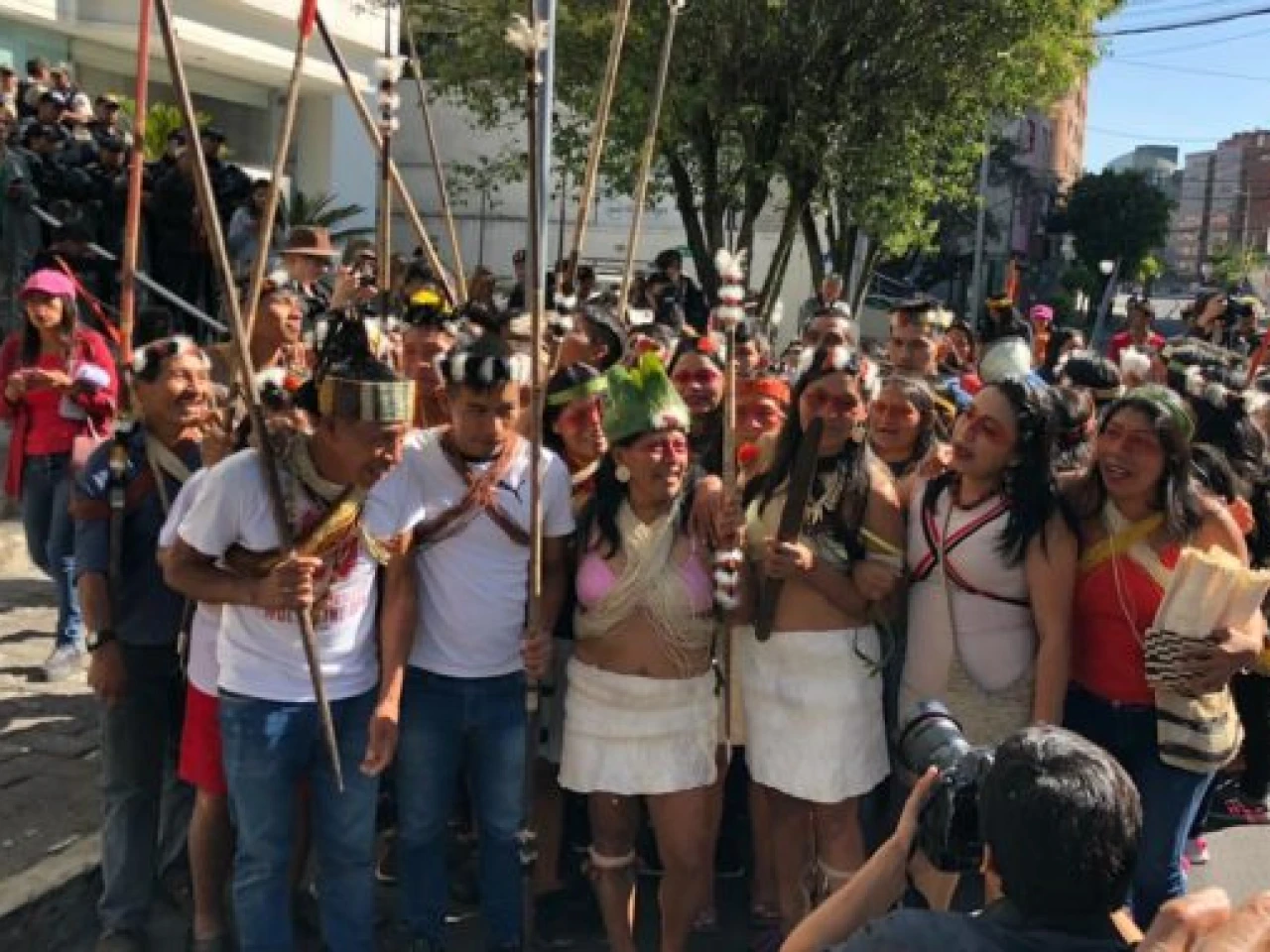 Ataviados con ropas tradicionales y pintados sus rostros, los indígenas amazónicos acudieran a la Corte Constitucional, el máximo organismo de control de la Carta Magna, y a la Contraloría (tribunal de cuentas del Estado), para demandar que se cumpla la normativa interna e internacional sobre los derechos de los pueblos indígenas.