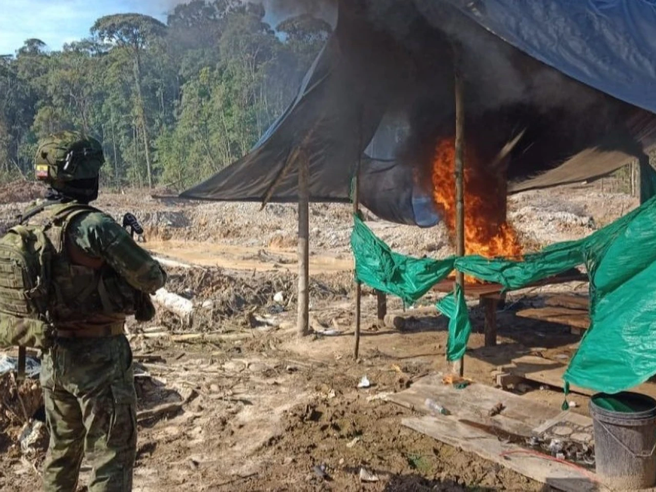 El informe identifica a la minería aurífera ilegal, como uno de los principales motores de pérdida de cobertura forestal en la Amazonía ecuatoriana / Foto: cortesía Ejército Ecuatoriano