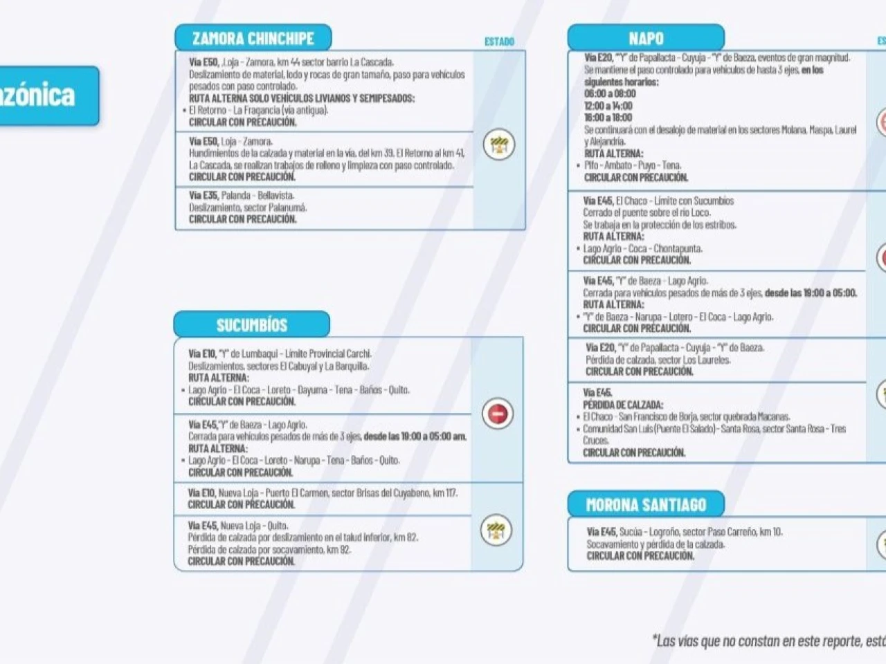 Actualización del informe del estado de las vías de la Amazonía ecuatoriana