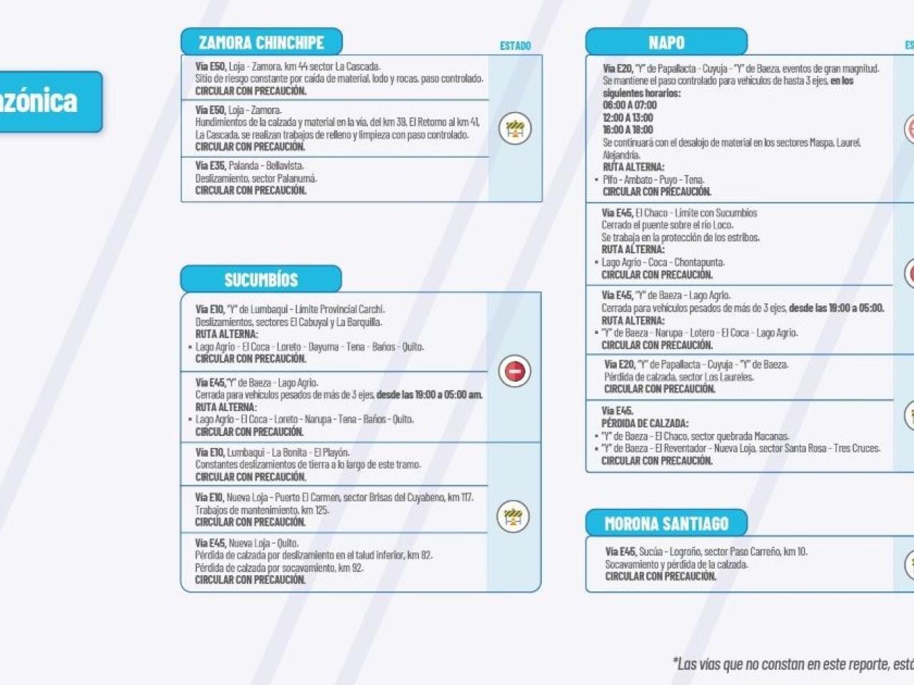 Actualización del informe del estado de las vías de la Amazonía ecuatoriana