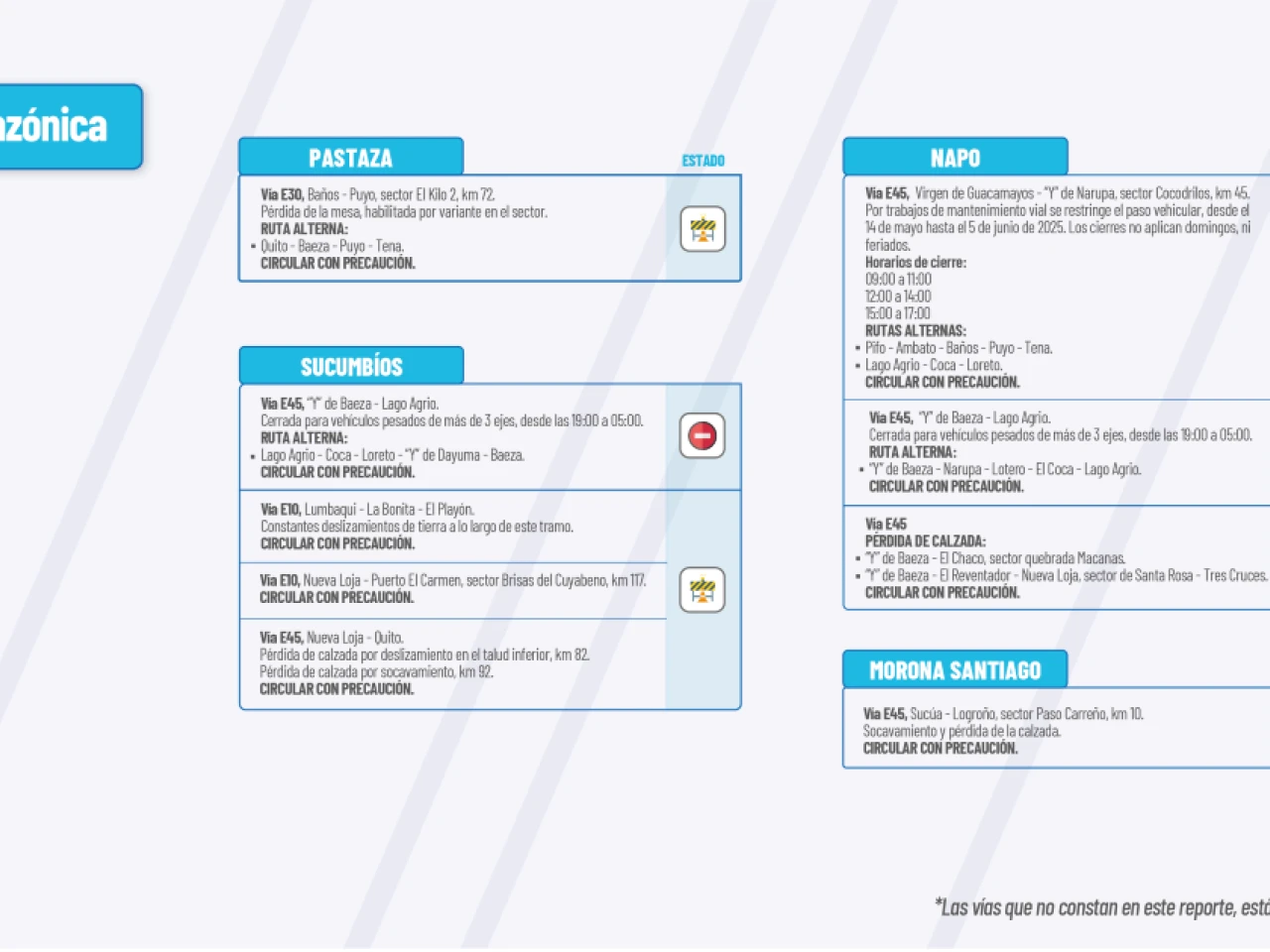 vias carreteras Provincia de Sucumbios provincia de Napo Provincia de Morona Santiago provincia de Pastaza Informe vialSíguenos en: