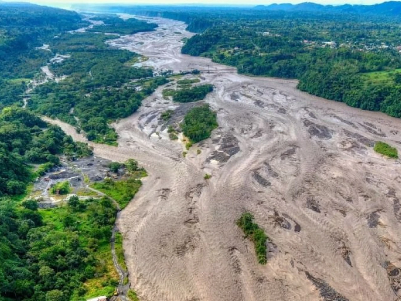El desbordamiento del río Upano destruyó parte de una carretera en Pastaza.