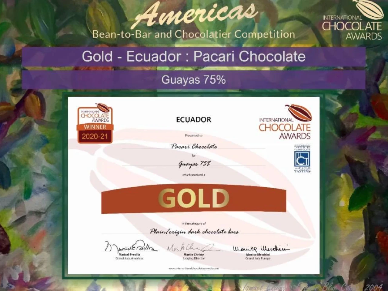 El jurado estuvo conformado por profesionales catadores de chocolate pasteleros, periodistas culinarios, blogueros, chef, entre otros de Estados Unidos. De esta manera, Pacari pasaría a participar en la final mundial.