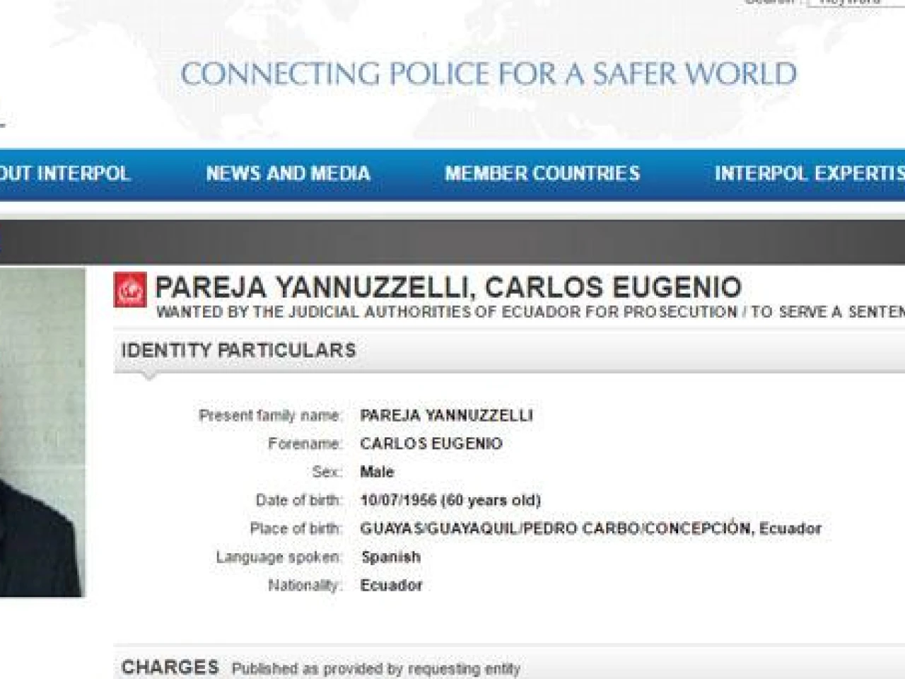 Hoy, 3 de noviembre de 2016, el nombre del exministro de Hidrocarburos y exgerente de Petroecuador, Carlos Pareja Yannuzzelli apareció en el Sistema de la Organización de la Policía Criminal (Interpol). Esto luego de que el ministro del interior, José Serrano, solicitase el pasado 23 de octubre de 2016, la difusión roja a la Interpol.