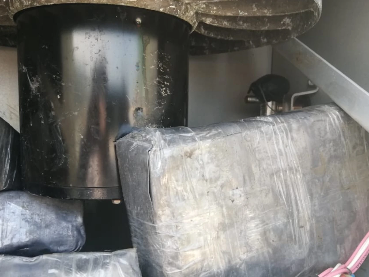 "Bajo el techo, dentro del aislamiento del contenedor refrigerado, se encontraron 96 barras de cocaína pura por un total de más de 110 kilos", añadió el comunicado.