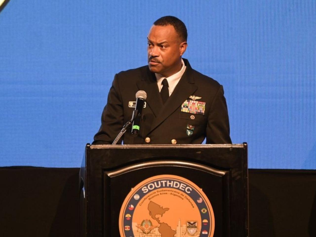 El almirante Alvin Holsey, participó este miércoles en la apertura de la SOUTHDEC 2025 en Buenos Aires / Foto: cortesía Luis Petri
