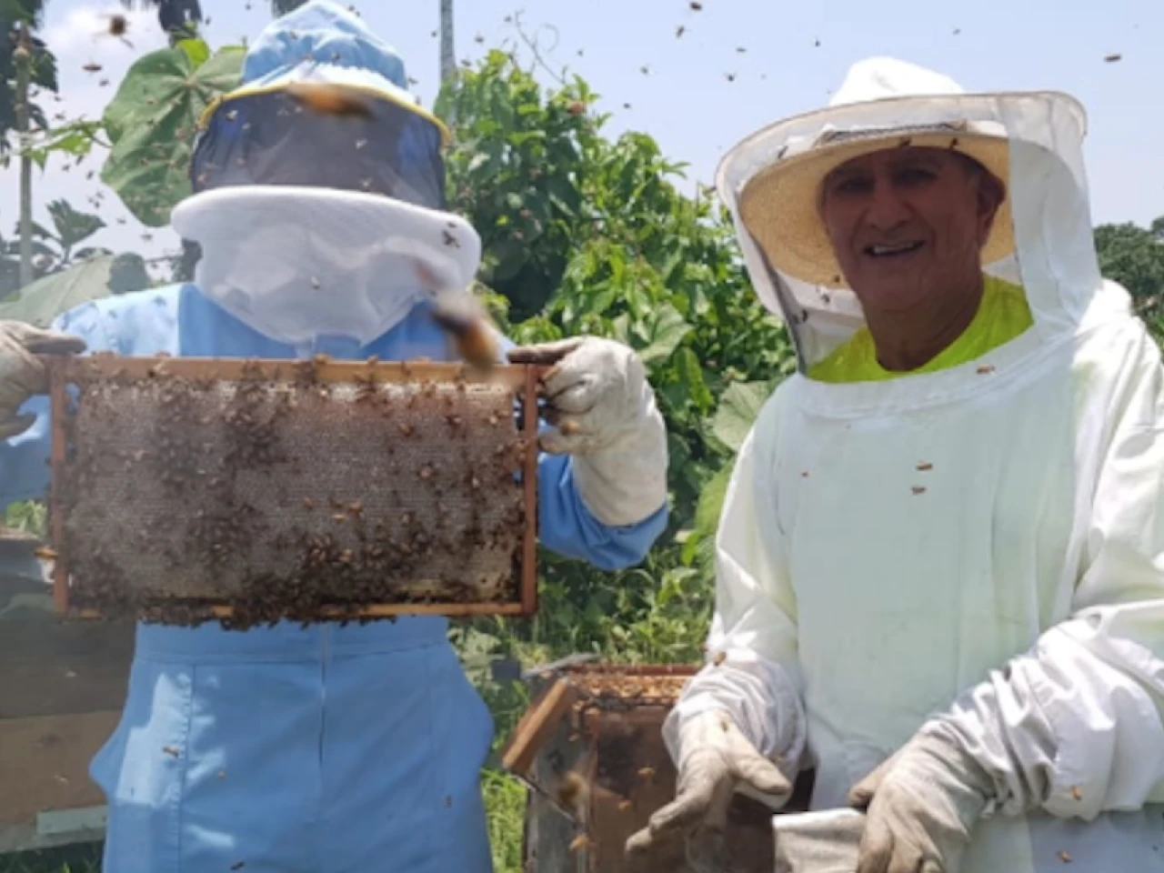 Los técnicos realizan inspecciones mensuales para la revisión de las abejas y multiplicación de colmenas, marcación de reinas, tratamientos contra enfermedades (varroa), fortalecimiento a emprendimientos, captura de colmenas silvestres, extracción de miel…