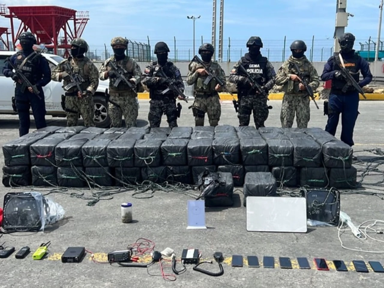 La Armada ecuatoriana explicó en un comunicado que los detenidos se trasladaban en una embarcación nodriza y seis pangas (botes) cargadas con 80 bultos que contendrían "sustancias sujetas a fiscalización".
