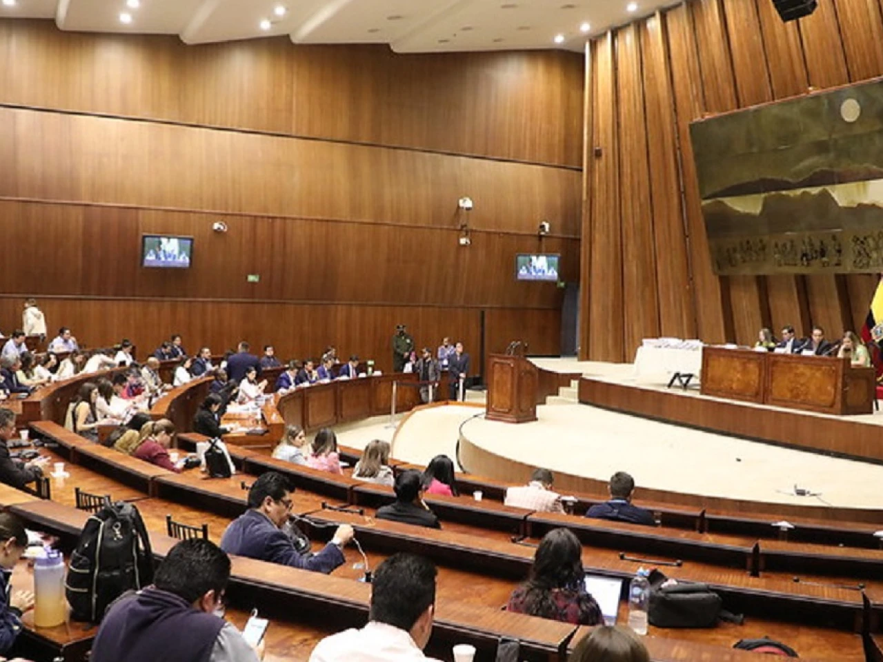 Con 117 asambleístas presentes de los 137 que componen la Cámara, el Legislativo ecuatoriano debe votar el informe elaborado por la Comisión de Fiscalización en base a las pruebas y testigos presentados por la acusación y la defensa, sobre un presunto peculado (malversación) cometido por el jefe de Estado.