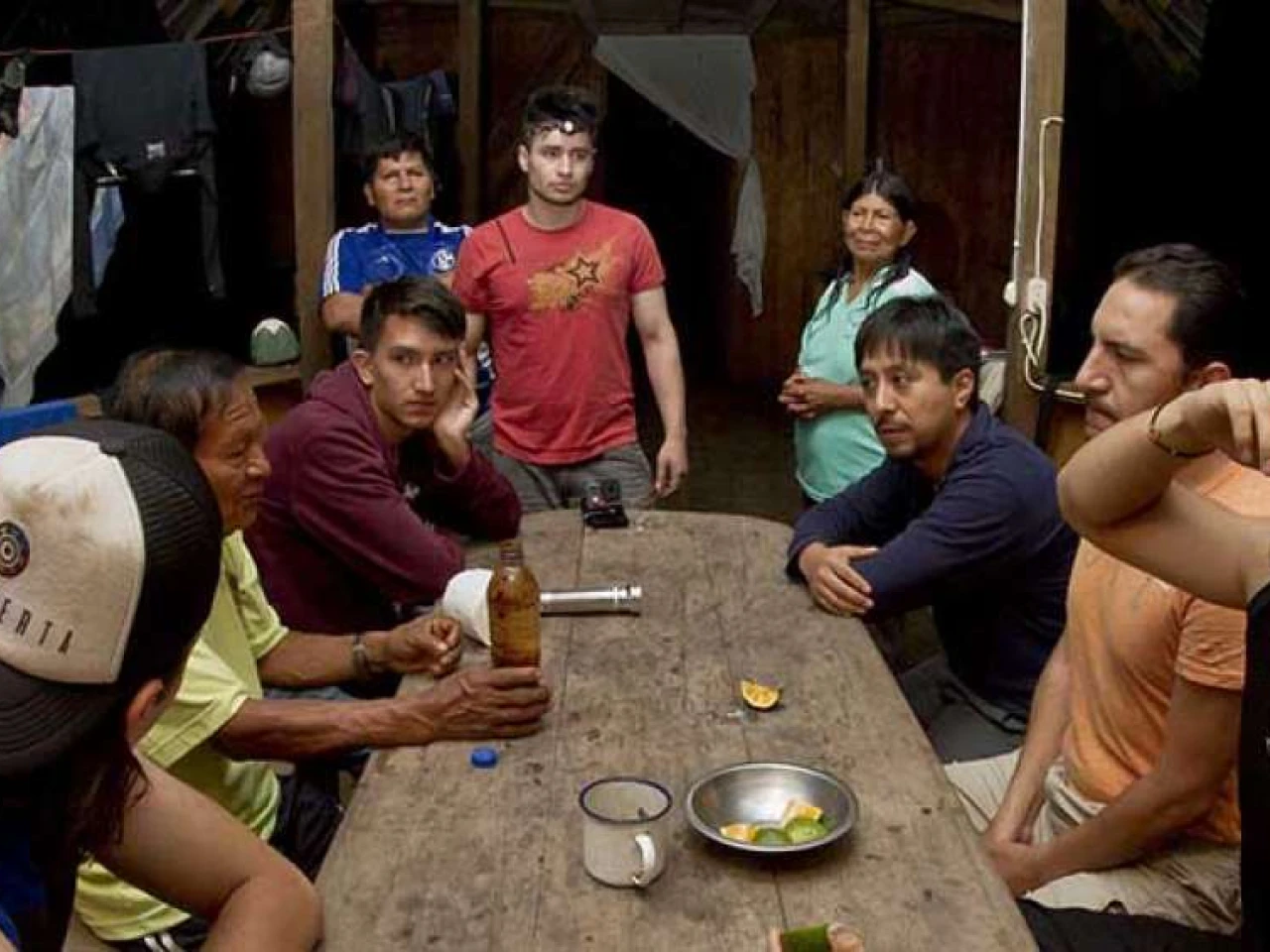 Casi siempre el ritual de ingesta de ayahuasca se inicia en una mesa de madera, al interior de una vivienda amazónica. Foto: El Telégrafo