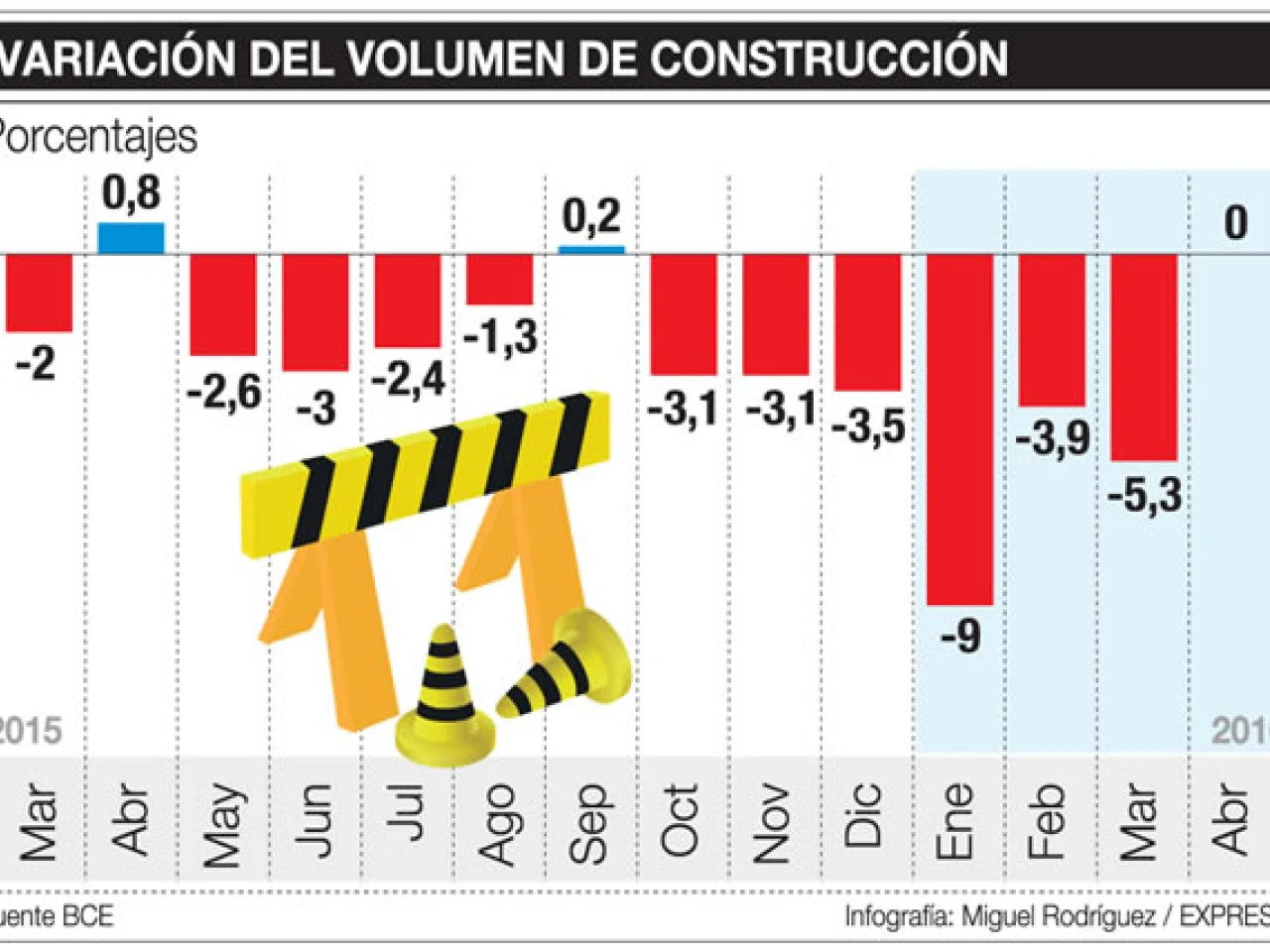 <p> El sector de la construcción por tres meses ha estado sin poder subir el número de obras a cifras positivas.</p>