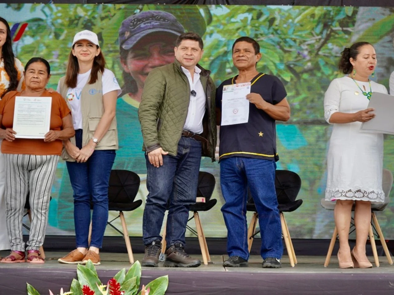 El acto incluyó la feria ‘Expo Emprende AgroJoven’, donde participaron jóvenes de 10 provincias, mostrando sus proyectos y emprendimientos. En este marco, Palacios entregó carnés y certificados de Agricultura Familiar Campesina, sellos AFC, y títulos de propiedad de tierras rurales a productores de Napo.